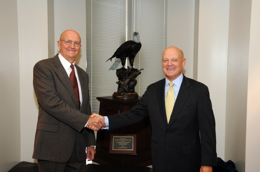 Dr. Zack T. Pate is shown with INPO CEO James O. Ellis on the occasion of Dr. Pate donating an award he received and dedicating it to the men and women of the Institute of Nuclear Power Operations.